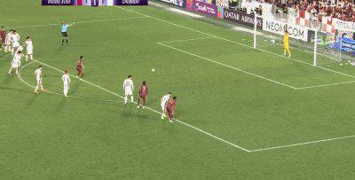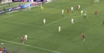 第65分钟,韦世豪左路得球,将球吊入禁区,混战中没人碰到皮球,球砸在右侧横梁上弹出。